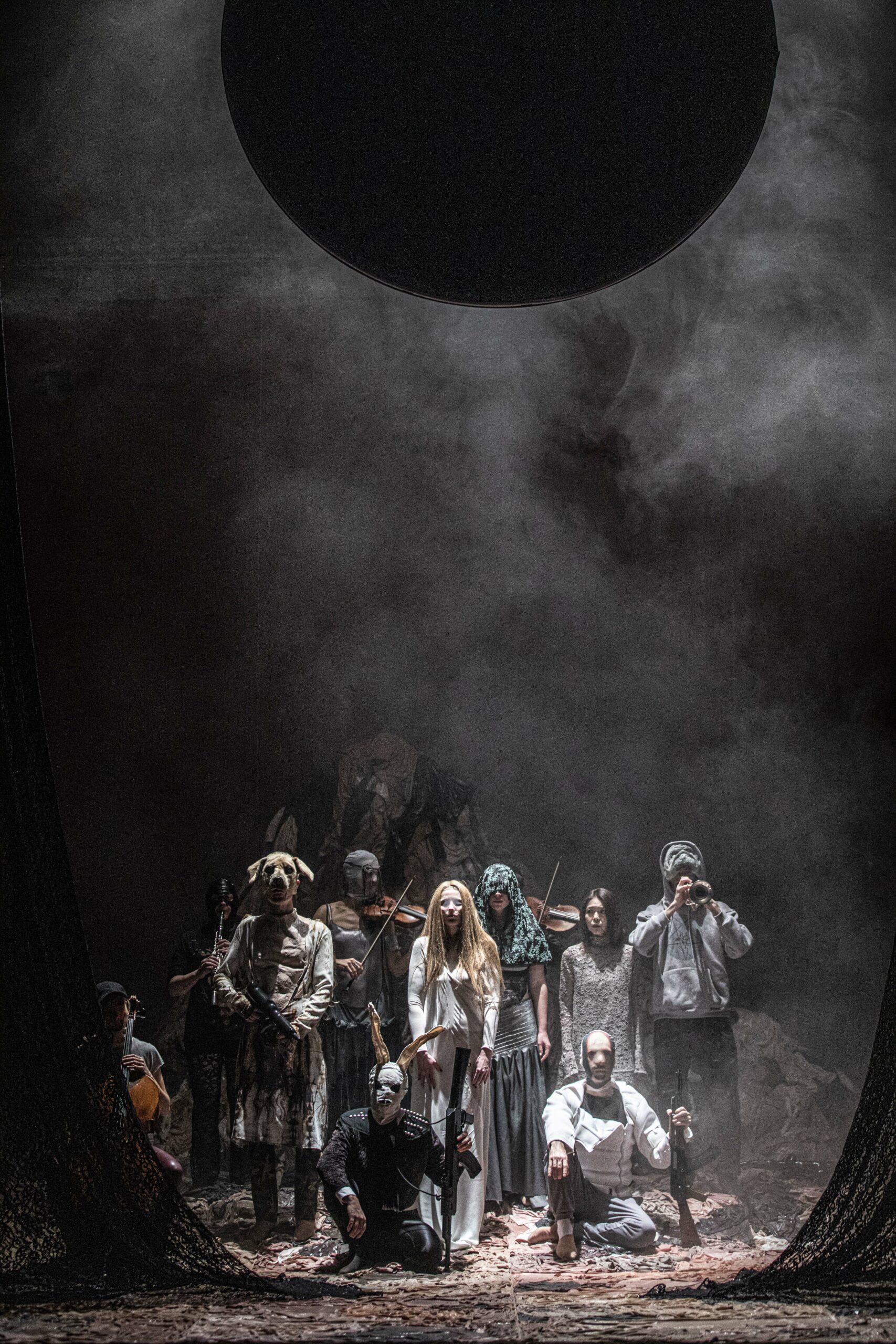 Organisé autour de deux cantates de Bach adaptées par Othman Louati, auxquelles s’ajoute une musique originale qu’il compose, Chiens met en scène un chœur hybride mêlé d’interprètes professionnels et amateurs accompagné par les musiciens de Miroirs Étendus.