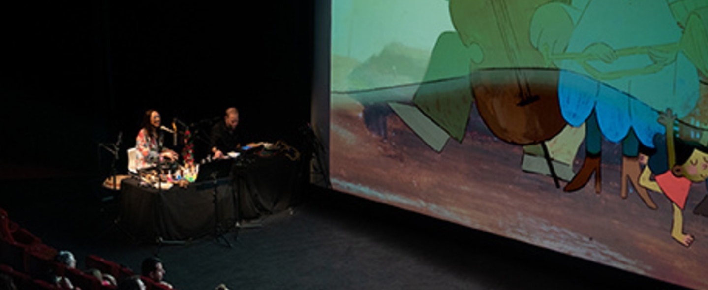 Ce sont 5 courts métrages qui mettent à l’honneur des filles. Des filles géantes à l’écran oui, mais surtout des filles géantes par leurs actions et gestes du quotidien qui font d’elles des filles extraordinaires. Elles se questionnent, elles jouent, elles rêvent, elles s’entraident, elles dansent, elles chantent… elles vivent. Elles se connectent à elle-même et aux autres et avec de simples gestes, de simples actions, elles transforment leur réalité «parfois difficile», en contes de fées. Elles sont géniales et géantes. L’ici et l’ailleurs seront encore une fois au rdv. Pour accompagner ces 5 courts métrages, David et Serena vont puiser dans leur répertoire de sons, de rythmes et de musiques outre frontières, pour les mélanger à des créations originales où d’autres langues que le français viendront chatouiller les oreilles. Il y a toujours une invitation au voyage dans leur proposition. Laissez vous embarquer !