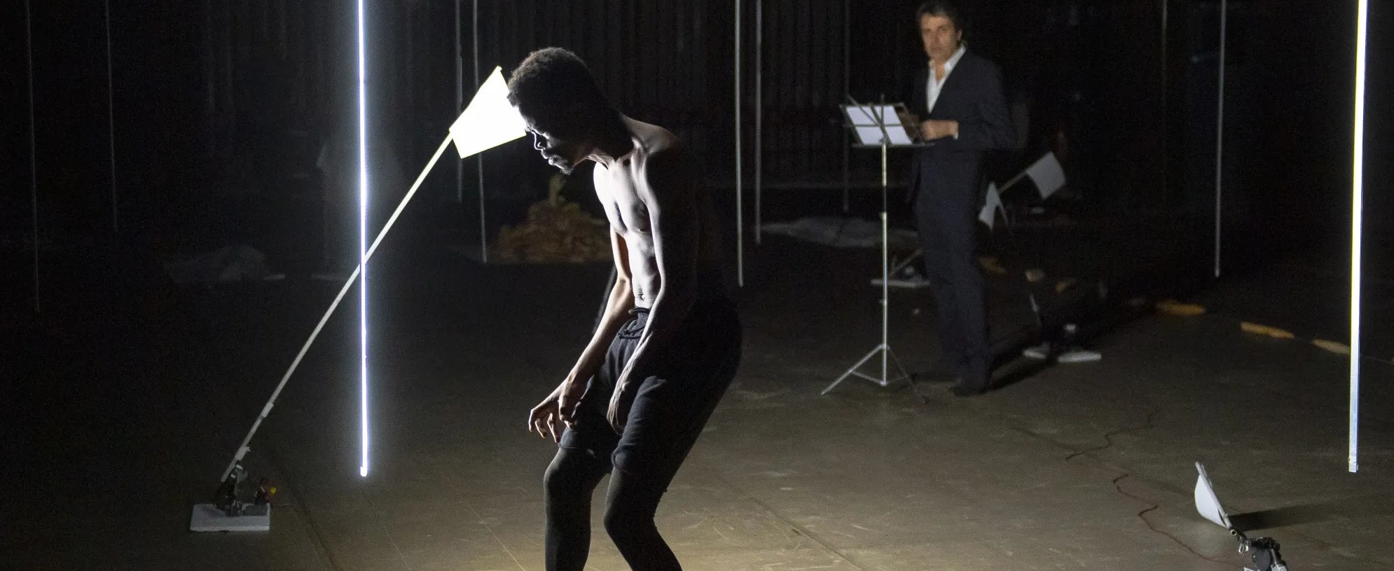 Deux subtils danseurs répondent par leurs corps à la langue de cette fiévreuse épopée. Dans l’univers plastique conçu par Denis Mariotte, la musique live de Benoît de Villeneuve et Benjamin Morando délivre nappes électroniques au souffle épique, chœurs éthérés, sons d’atmosphère ou gimmicks obsédants, au sein d’un ingénieux dispositif architectural de lumières signé Yves Godin. Une marche vers l’abîme qui traverse le temps pour mieux interpeler notre présent.