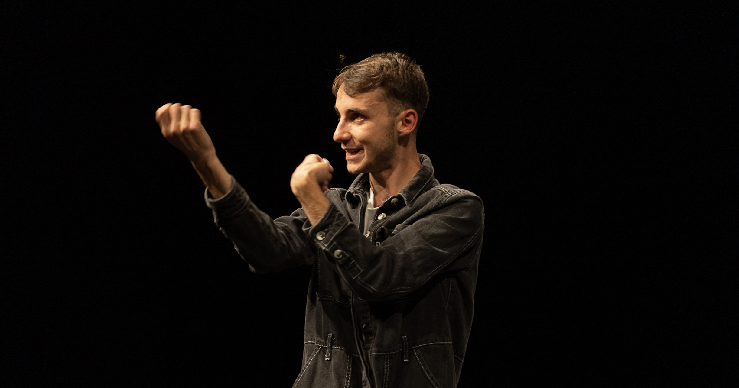 Emeric Cheseaux raconte son départ d’une petite commune pour la « grande ville ». À travers ses imitations, se déploient les portraits drôles, touchants et violemment humains des figures qui ont peuplé ses jeunes années. La révérence emmène les spectateur·x·rice·s au plus intime des rapports familiaux où s’entrechoquent deux sujets chers à son interprète : le milieu rural dont il vient et son homosexualité tue. Avec des caisses à vendanges pour seuls accessoires, le comédien se réapproprie le langage de ses origines pour réconcilier son héritage avec son identité.