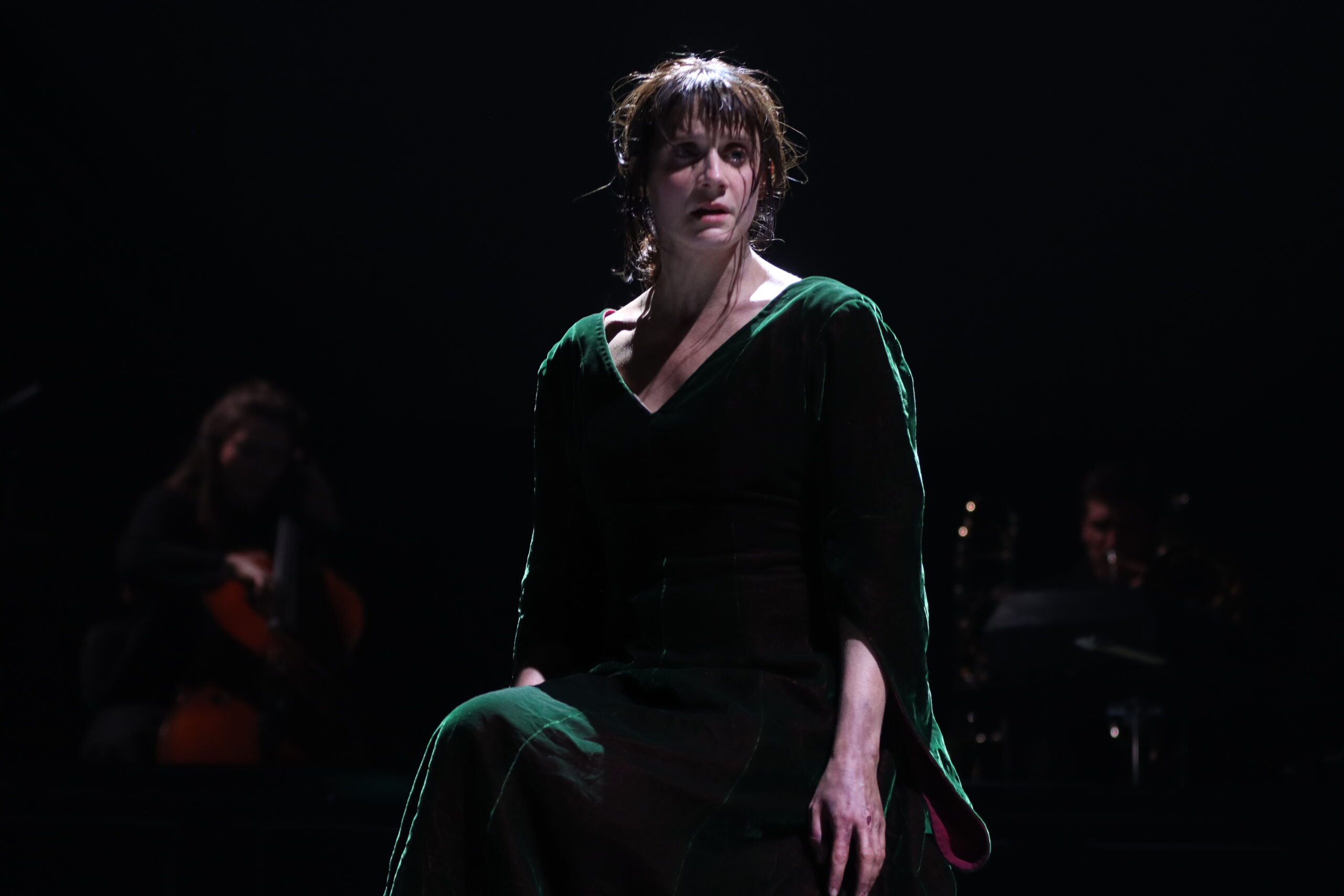 Pour cette nouvelle création, Judith Chemla retrouve Yves Beaunesne et Camille Rocailleux – le trio avait présenté L’Annonce faite à Marie de Paul Claudel au Théâtre des Bouffes du Nord en 2014. À partir d’un livret écrit par Marion Bernède et fondé sur la retranscription des minutes du procès, restituant la langue et le style de l’époque, Yves Beaunesne compose une forme d’oratorio, mêlant la parole et l’histoire, l’histoire et le sens, le sens et la musique. Les instrumentistes et les choristes accompagnent Judith Chemla au plateau, comme l’accompagne la création vidéo de Pierre Nouvel qui fait surgir les autres présences de ce procès historique.