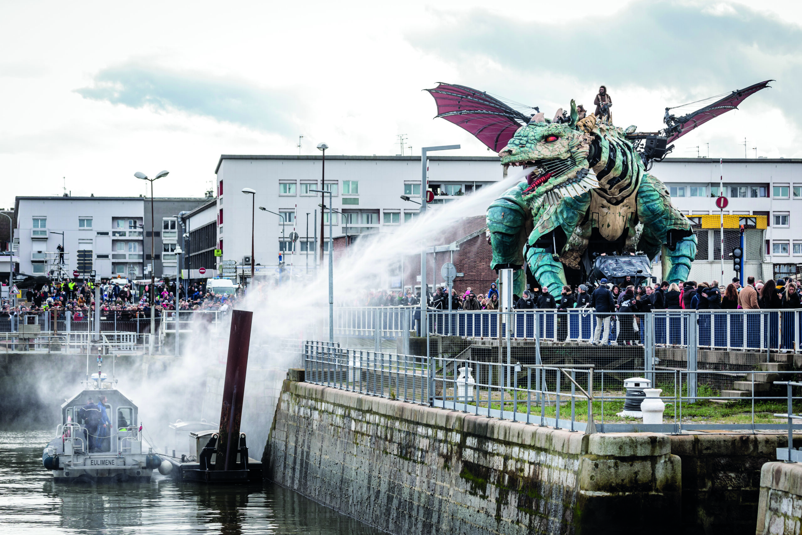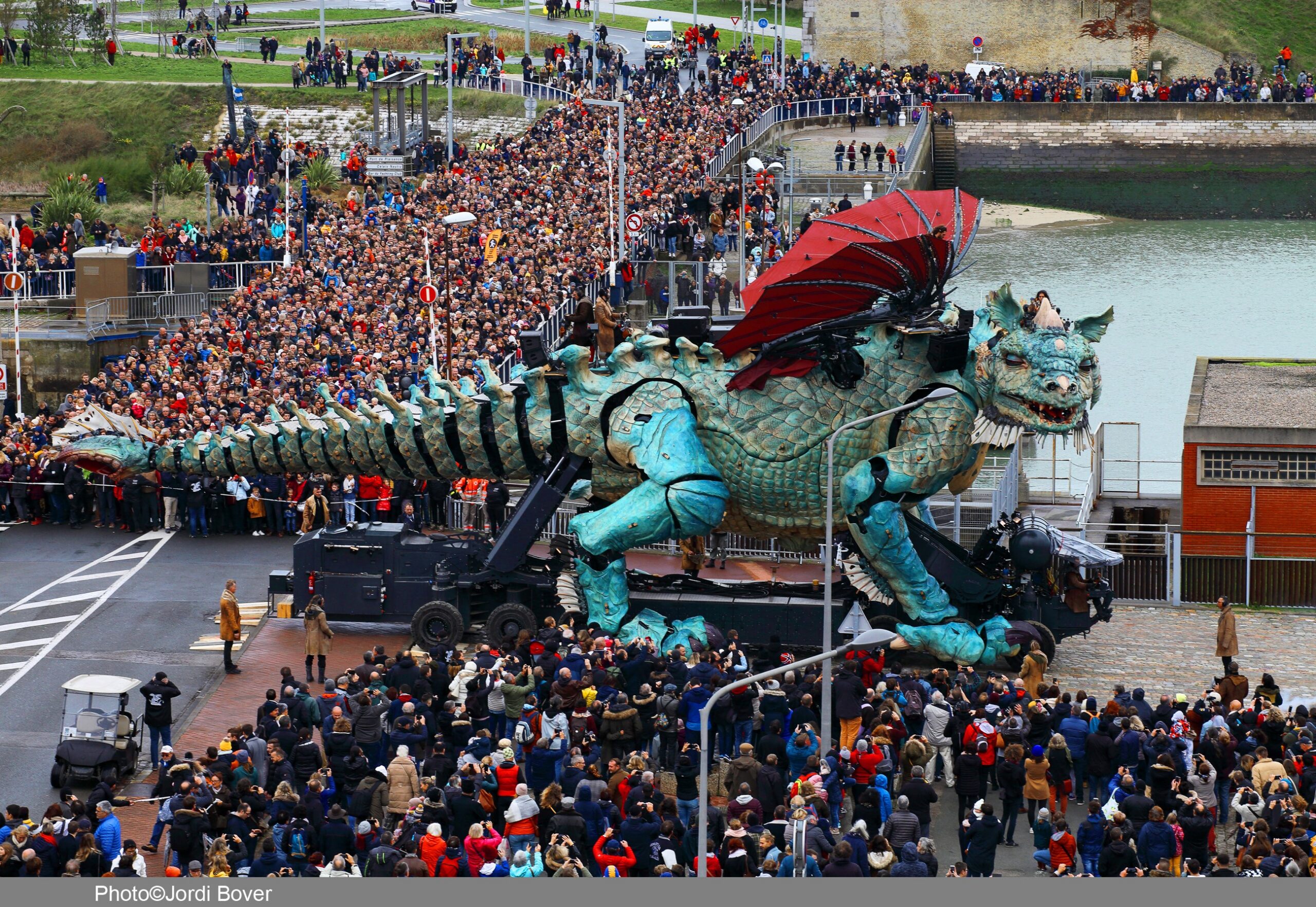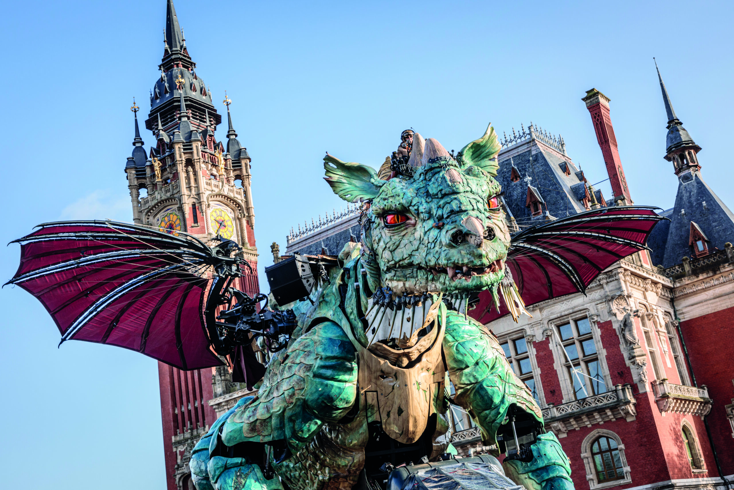 Le spectacle inaugural du Varan de Voyage réunira, pour la première fois à Calais, trois créatures issues de l’imaginaire de François Delaroziere. Le Dragon de Calais, majestueux gardien de 72 tonnes, arpente depuis 2019 le front de mer avec ses ailes de toile et son souffle de feu. À ses côtés surgira le Varan de Voyage, long de près de 15 mètres, plus agile et plus discret, conçu pour se faufiler dans les ruelles et porter le récit au cœur des quartiers. Enfin, viendra Lilith, la Gardienne des Ténèbres, une figure sculpturale aux allures énigmatiques, dont la présence marque un tournant dramatique dans la mythologie du bestiaire. Ensemble, ils composeront un trio spectaculaire et symbolique, mêlant puissance, mouvement et mystère, pour écrire sous les yeux des spectateurs une fable urbaine vivante, à l’échelle de toute la ville.