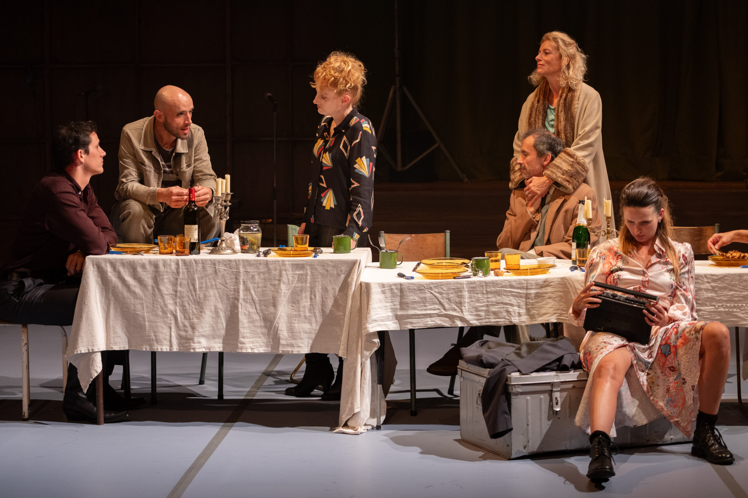 Mais nous fêtons un événement important, cette soirée est une soirée particulière. La fille aînée des patrons de la troupe se fiancera, dans les coulisses, avec le jeune premier de la fin de l’acte un. Elle l’épousera, ils seront chefs du théâtre, ils joueront le répertoire de la compagnie, contre tous les aléas de l’existence, les hôtels mal chauffés, le petit personnel agressif des salles des fêtes de province et l’indifférence narquoise du public et des enfants imbéciles. Demain, nous fuirons, mais ce soir encore, nous faisons semblant puisque nous ne savons rien faire d’autre. »