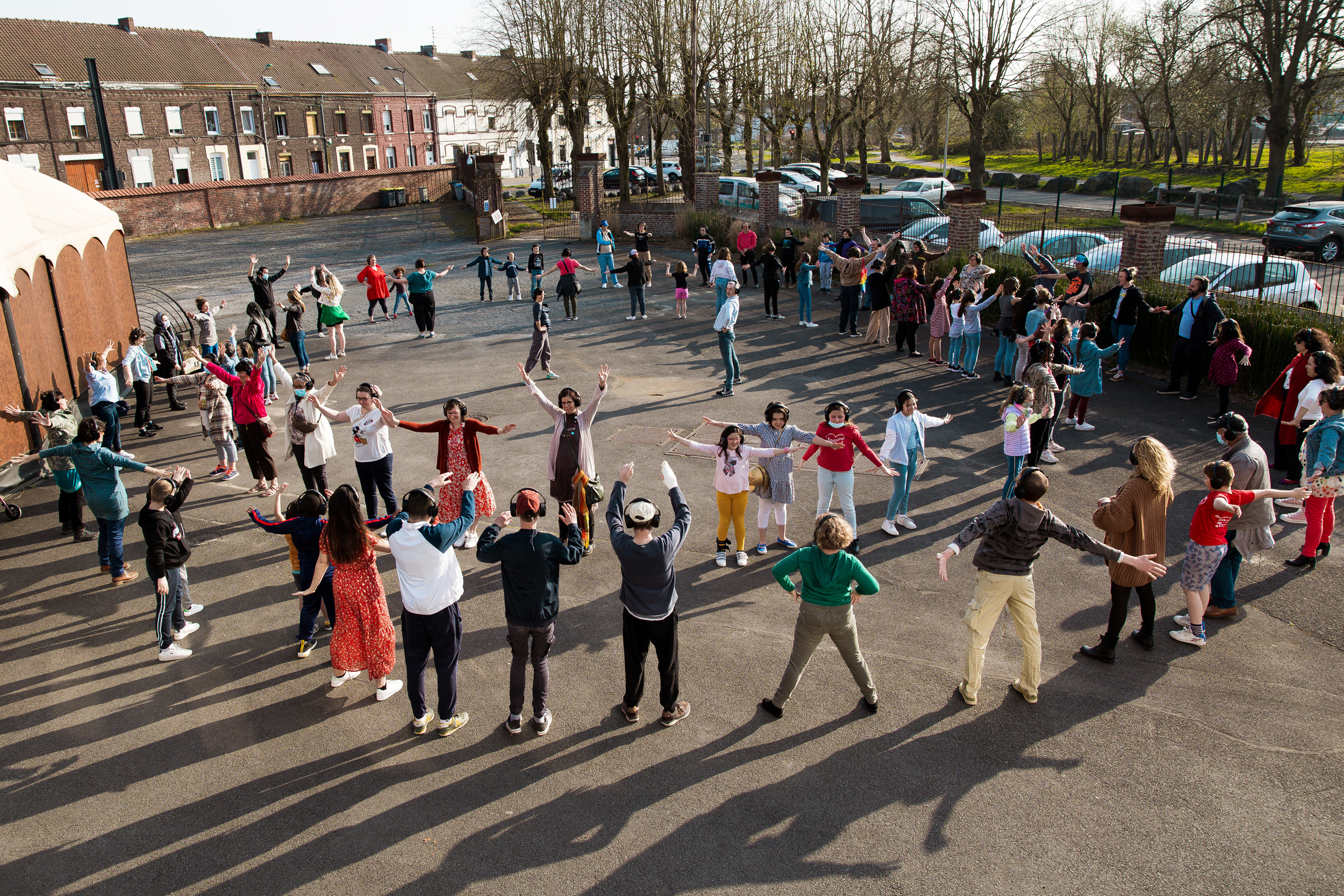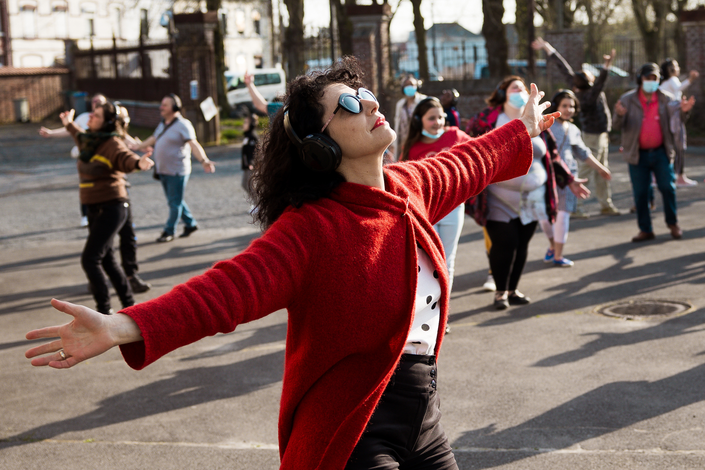 Donne-moi la main (Happy Manif) est un spectacle chorégraphique participatif et audioguidé, destiné aux enfants. David Rolland et Elise Lerat abordent ici la question de « la peur de l’autre » et interrogent plus spécifiquement les relations mises en jeu au sein de la communauté scolaire pendant la récréation. Ils invitent ainsi les élèves tout comme leurs encadrants et parents à prendre conscience des rapports qui se créent dans cet espace de vie commune qu’est la cour de l’école.